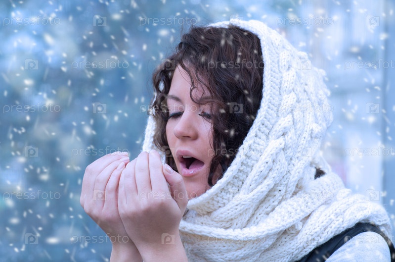 Портрет молодой женщины в белом платке с капюшоном