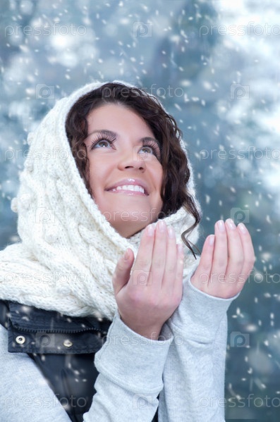 Портрет молодой женщины в белом платке с капюшоном