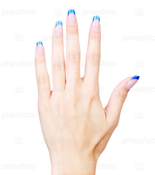 Женская рука с французским синим маникюром