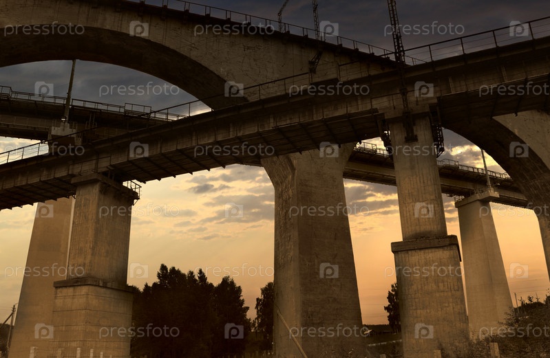 Железнодорожный мост против неба и облаков