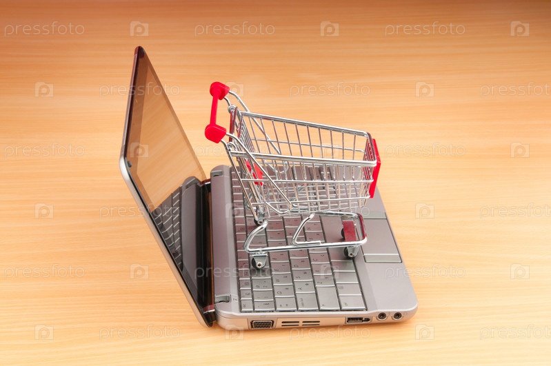 Тележка для покупок и ноутбук