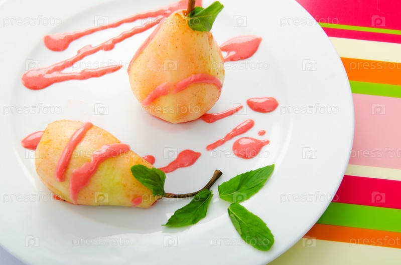 Десерт с грушей в соусе