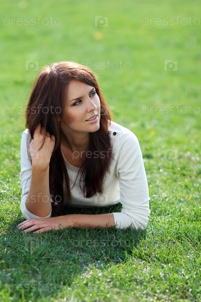Портрет молодой красивой девушки на траве