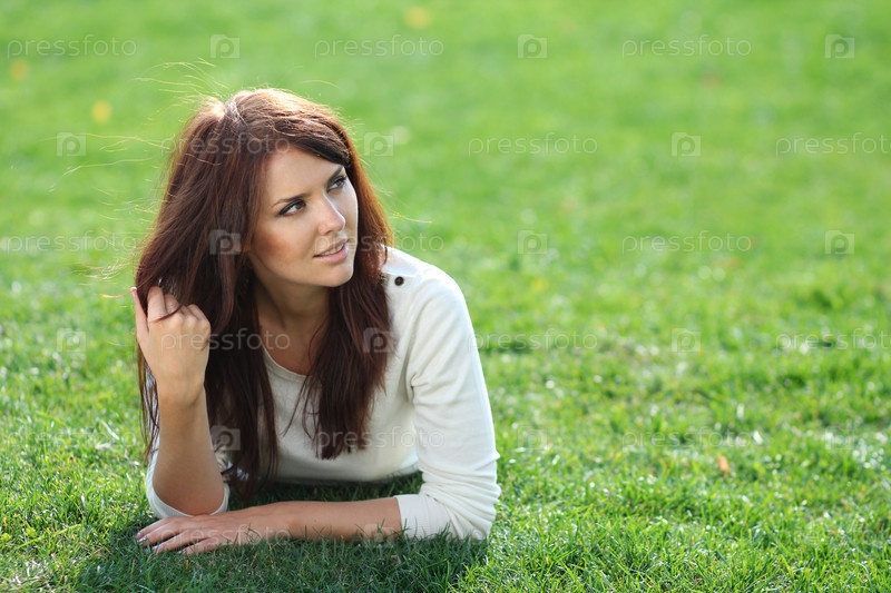 Портрет молодой красивой девушки на траве