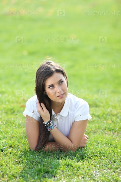 Портрет молодой красивой девушки на траве