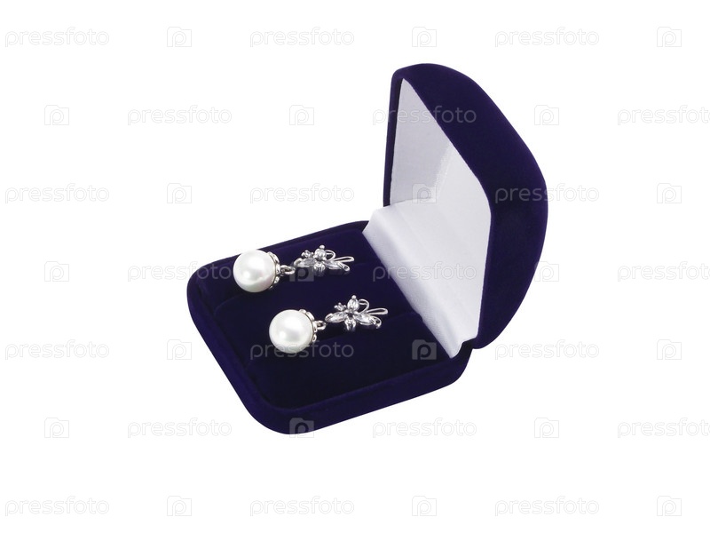 Серебряные серьги в подарочной коробочке на белом фоне