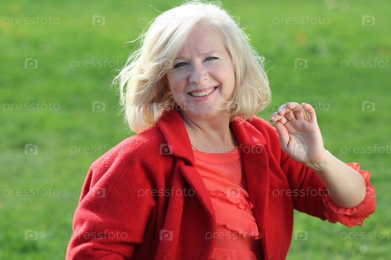 Портрет улыбающейся пожилой женщины на открытом воздухе
