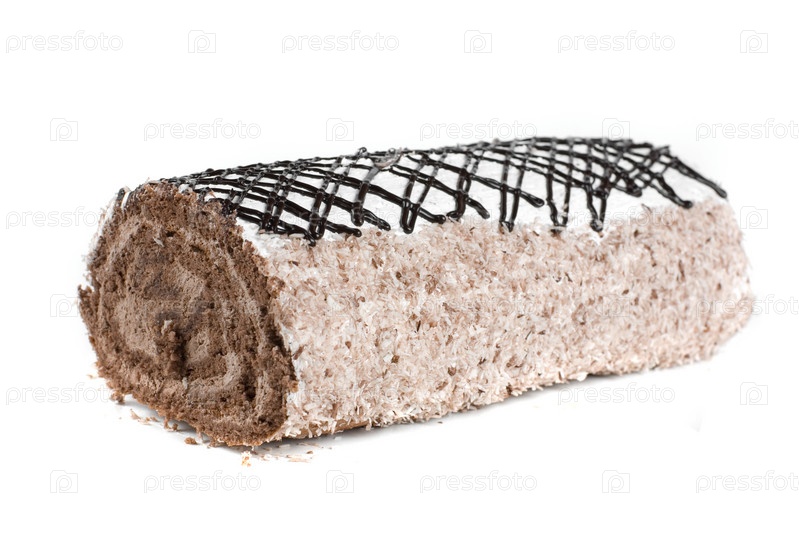 Шоколадный рулет на белом фоне