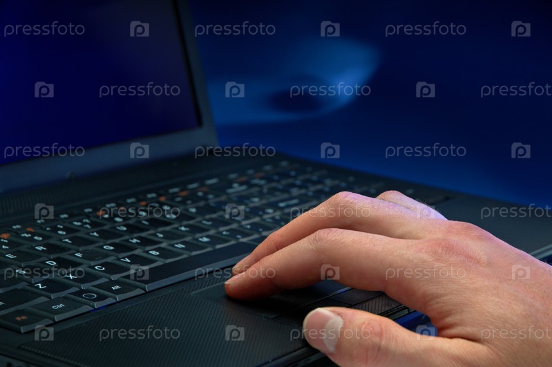 Рука на клавиатуре ноутбука