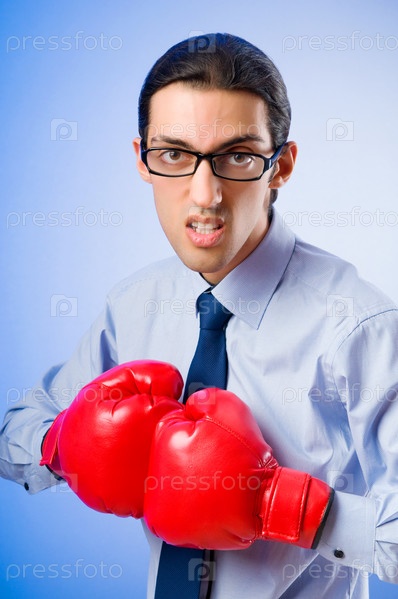 Молодой бизнесмен в боксерских перчатках
