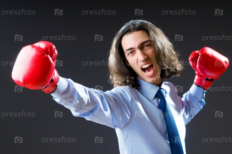 Молодой бизнесмен в боксерских перчатках