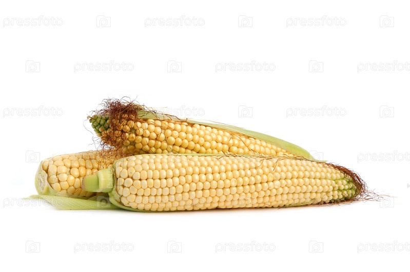 Свежая кукуруза в початках на белом фоне