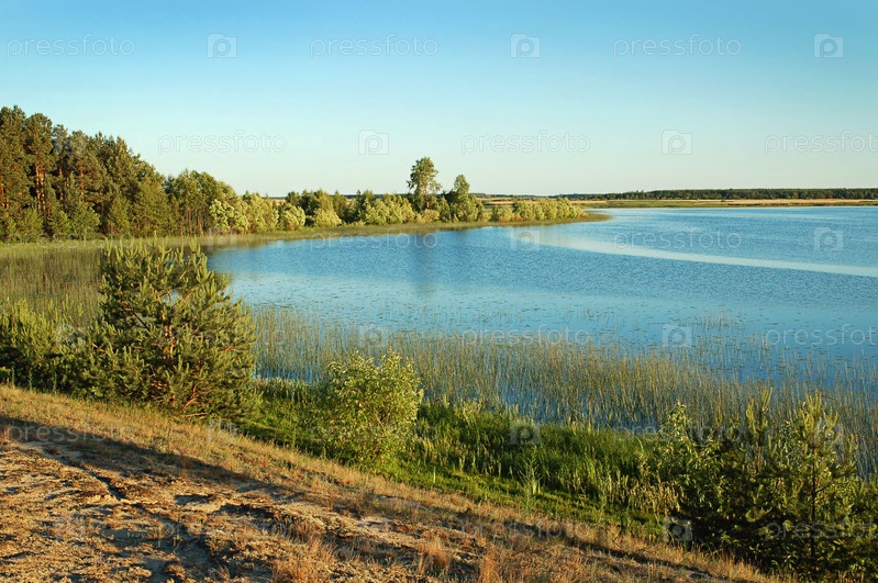 Красивый вид на озеро и лес