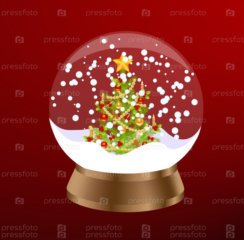 Шар с елкой внутри на красном фоне