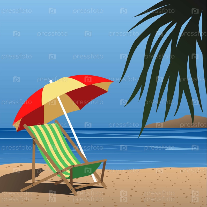 Раскладное кресло и зонтик на пляже
