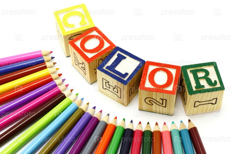 Цветные карандаши и деревянные кубики