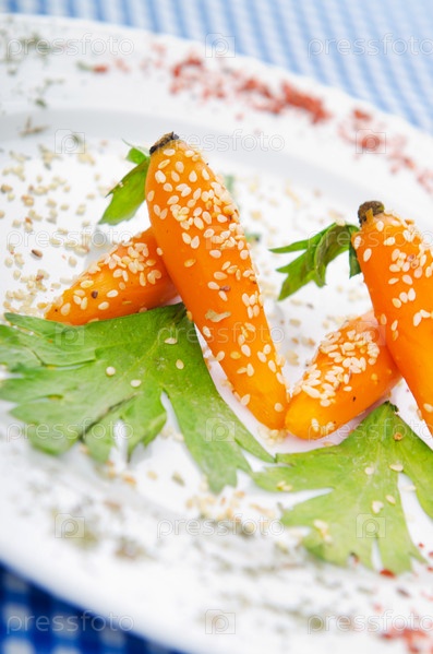 Вареная морковь сервирована на белой тарелке