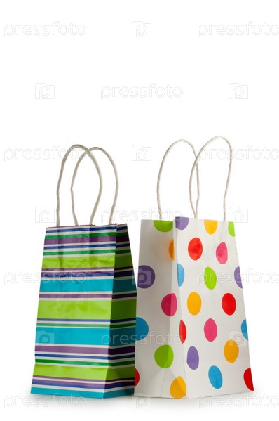 Два красочных бумажных пакета на белом фоне