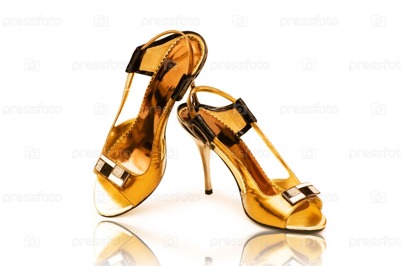 Элегантные блестящие туфли на белом фоне