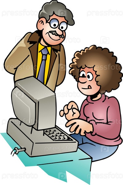 Учитель и студентка у компьютера