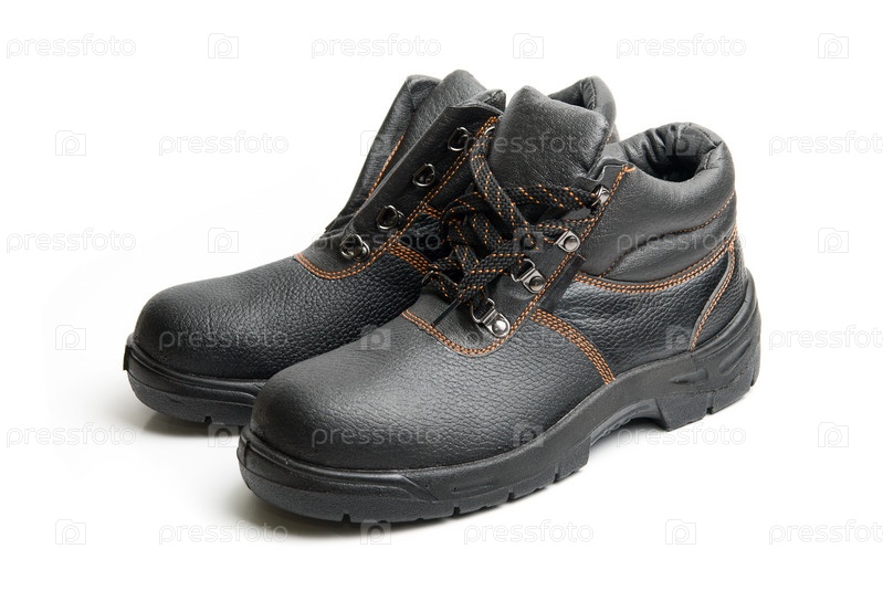Пара черных мужских ботинок на белом фоне