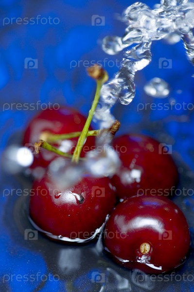 Объект на синем - пищевая вишня в воде