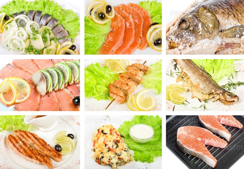 Коллаж из различных рыбных блюд
