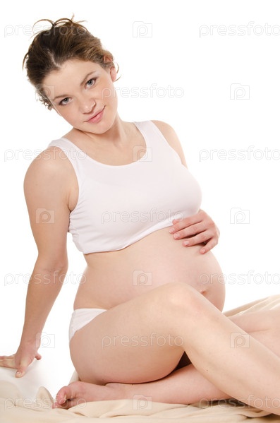 Беременная женщина на белом фоне