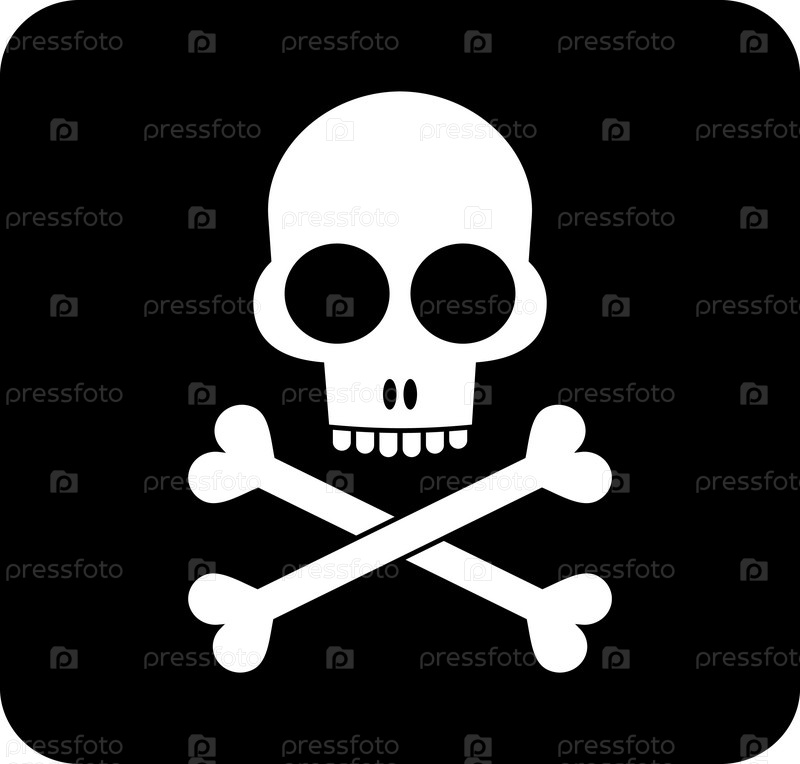 Череп и скрещенные кости. Черно-белый изолированный векторный значок