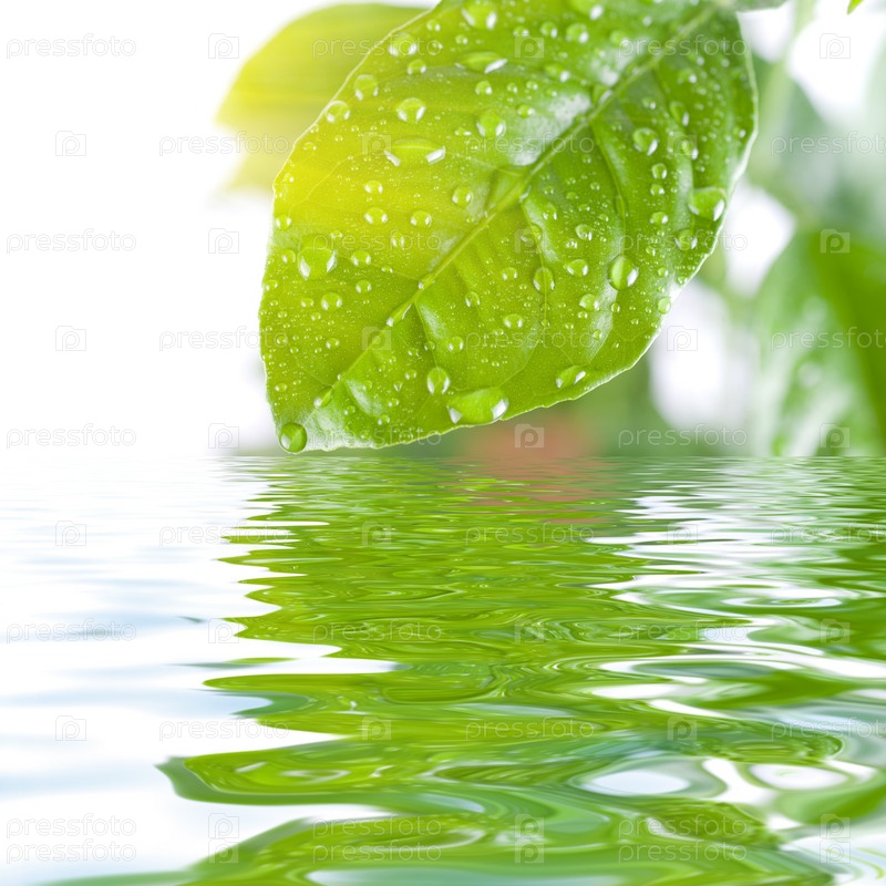 Зеленый лист и вода