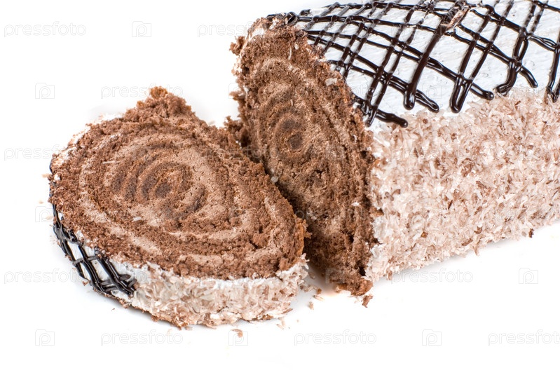 Шоколадный швейцарский рулет, изолирован на белом фоне