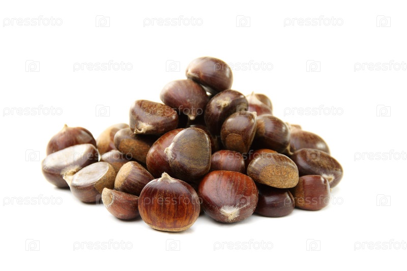 Спелые плоды каштана на белом фоне