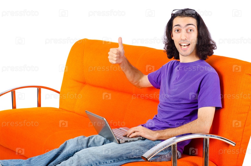 Бизнесмен с ноутбуком, сидящий на диване