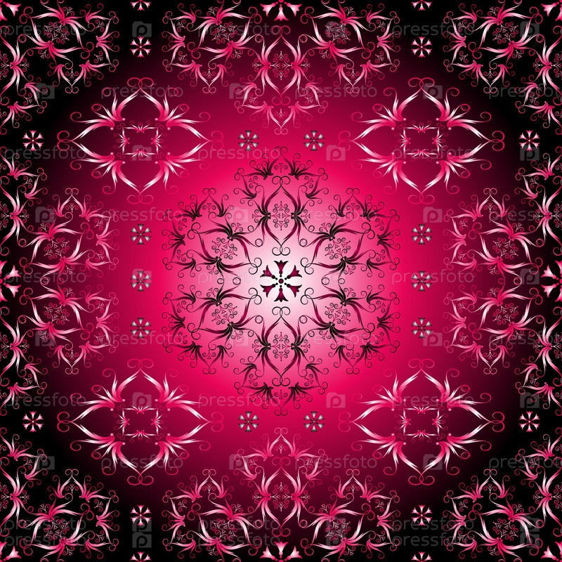 Розовый, пурпурный и черный цвета на шаблоне с классическим орнаментом