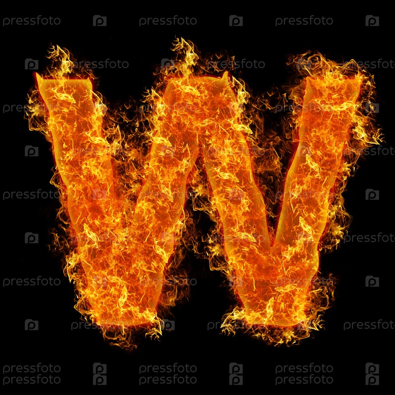 Огненная буква W на черном фоне