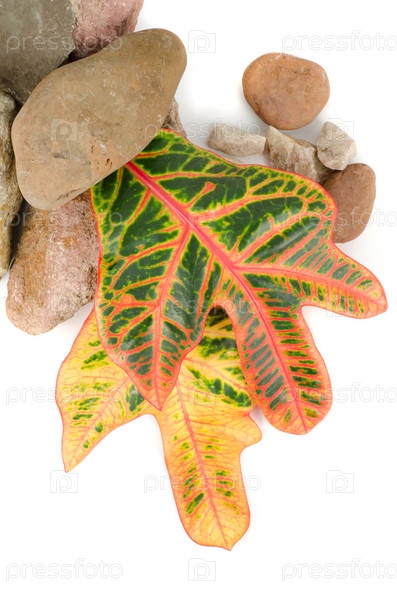 Камни и листья на белом фоне