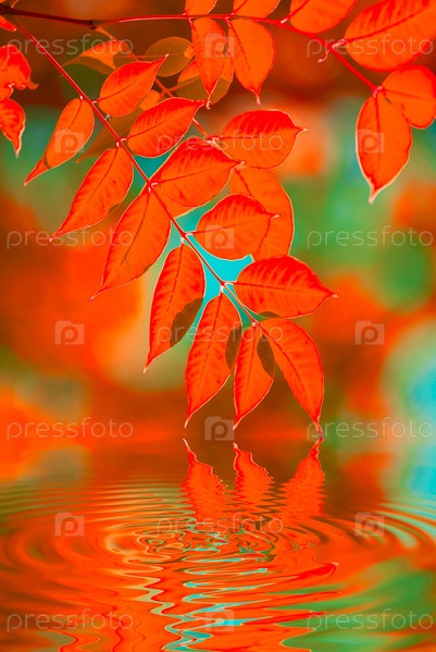 Осенние листья, отражающиеся в воде