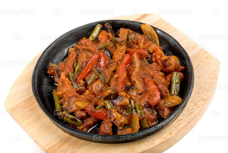 Жареное мясо с овощами на сковороде