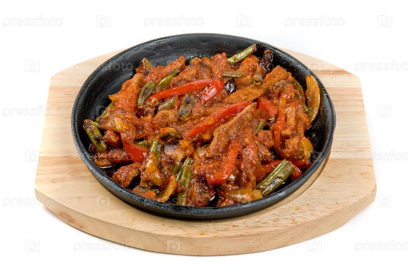Жареное мясо с овощами на сковороде