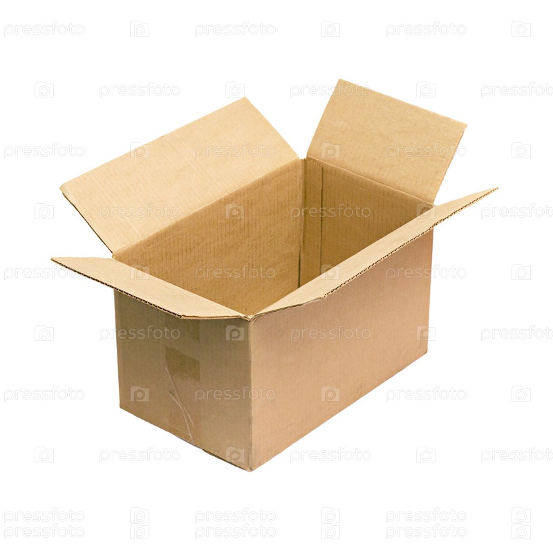 Пустая картонная коробка на белом фоне