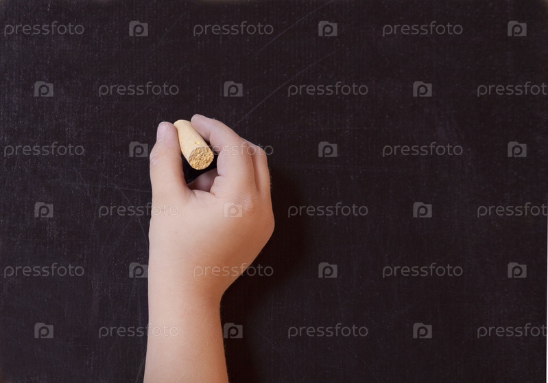 Рука с мелом у школьной доски