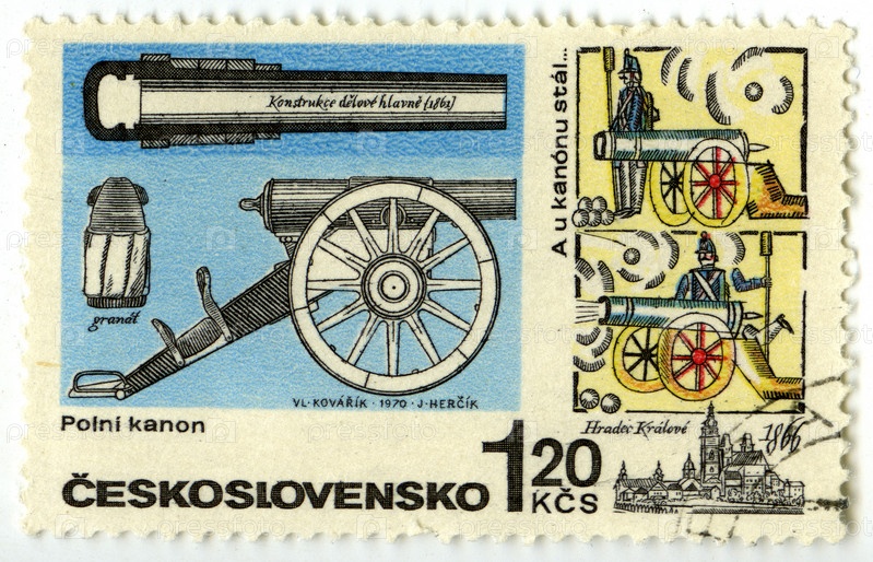 Полевая пушка, почтовая марка Чехословакии 1970 года