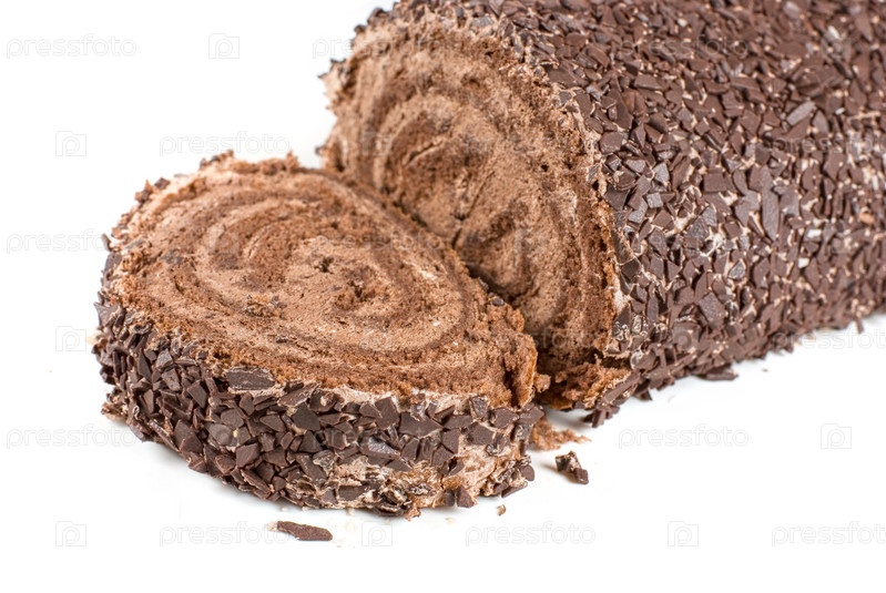 Шоколадный рулет на белом фоне