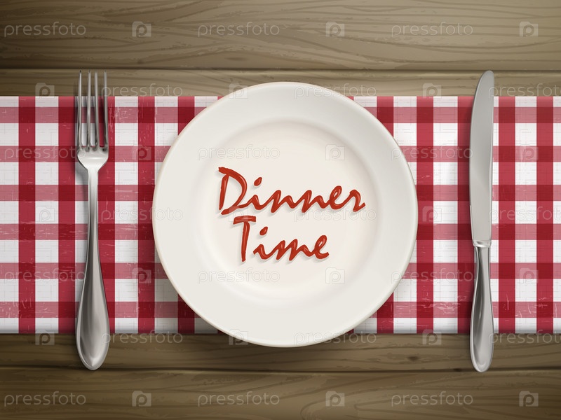 Ужин время написаны кетчупа на тарелке