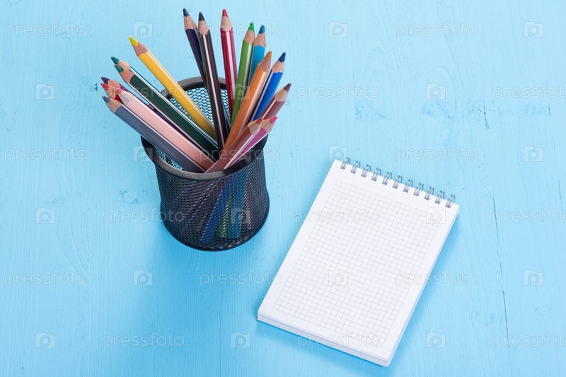 Чистый лист бумаги и красочный карандаши