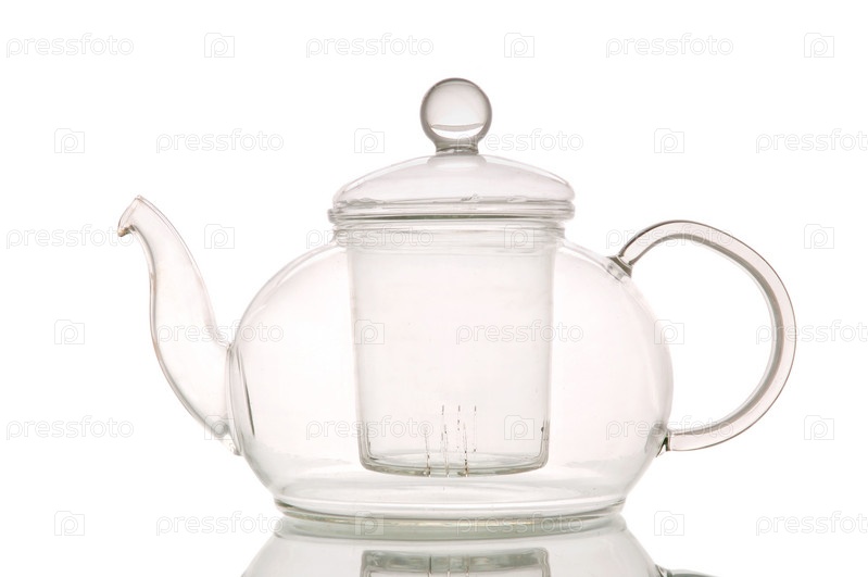 Пустой стеклянный чайник на белом фоне