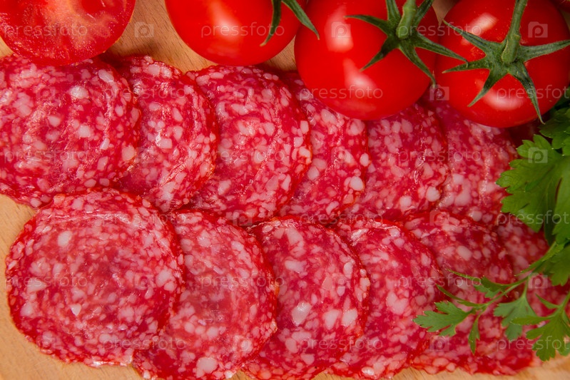 Помидоры с ломтиками колбасы