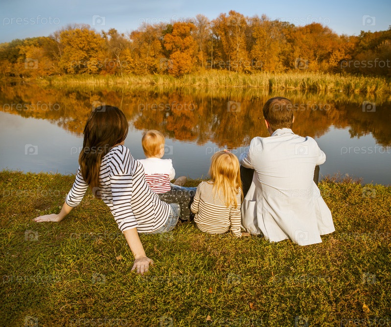 Счастливая семья на осенние сельской местности