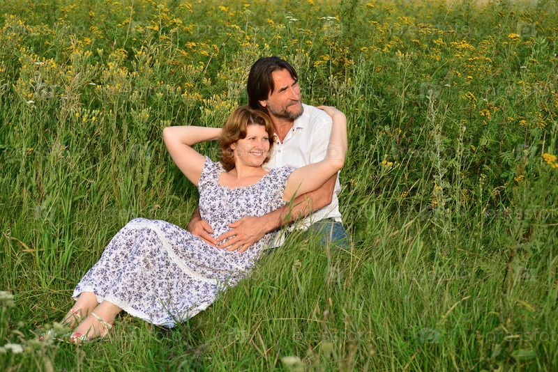 Пара расслабляющий на лугу