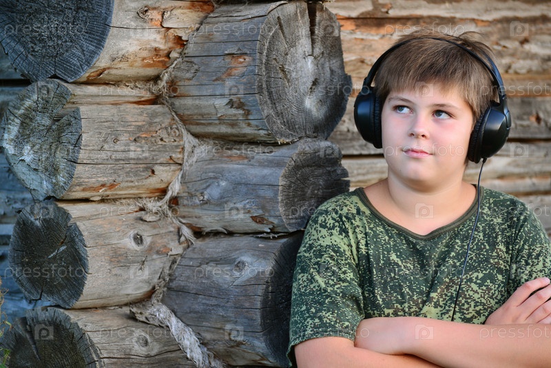 Мальчик, прослушивания музыки на наушники